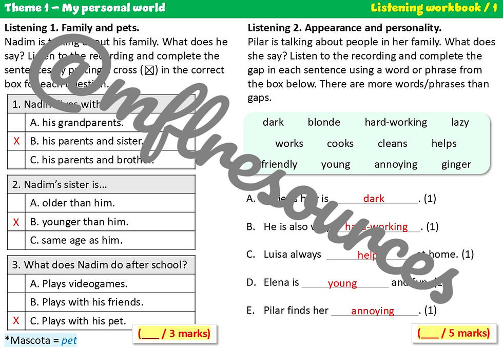 GCSE 2024 (Edexcel) - Theme 1 - Listening workbook