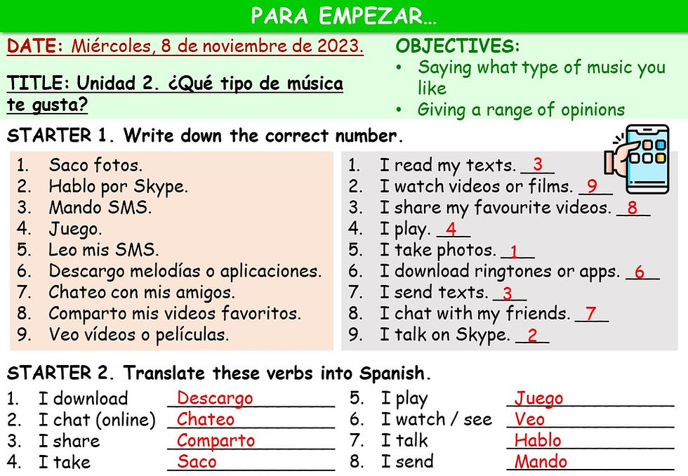Viva 2 - Módulo 2 (Todo sobre mi vida) - Lesson for unit 1 (Mi vida, mi móvil)