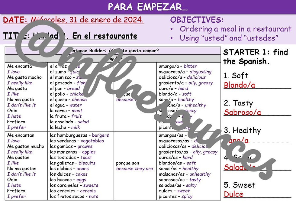 Viva 2 - Module 3 (¡A comer!) - Lesson for unit 1